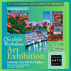 The Lakeway Arts Committee is thrilled to announce our new art exhibit for June and July, showcasing the vibrant works of talented local artist, Charlotte Michelson.